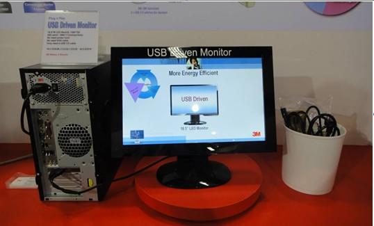 以往的LCD显示器功率都在40W左右,电脑上无论哪种数据接口都不能满足如此高的功耗要求(以带电力输出功能的USB2.0为例,单个端口最大输出功率为2.5W,离40W还差很多)。 因此,要想用USB数据线给显示器供电,显示器自身的功耗得低下去,数据线接口的供电能力得提上来。借助增亮膜实现的高效LED背光模组,和可以承载更高功率的USB3.0,使得USB供电供电显示器成为现实。