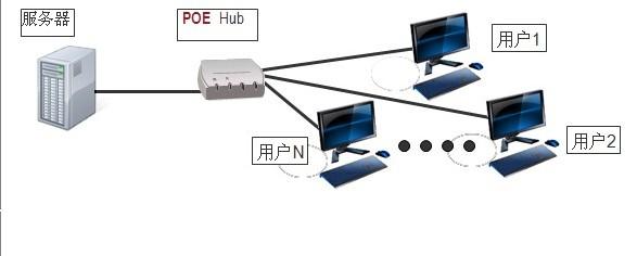 PoE交换机同时传输网络数据信号和供电信号,PoE显示器内部集成了精简的主系统板,包含CPU,内存,芯片组,以太网接口,一片液晶显示屏及其视频转换芯片,系统板作为终端通过以太网接口与应用服务器通信。样机采用Ctrix 服务-终端方案,整套系统功耗15W。